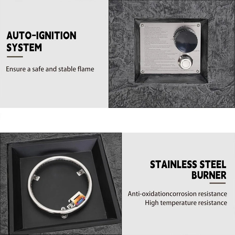 This gas fire table is not just about looks; it offers a versatile heating solution for your outdoor entertainment needs. Ideal for roasting marshmallows or simply enjoying a glass of wine under the stars, this fire pit table brings both warmth and style to your outdoor activities.