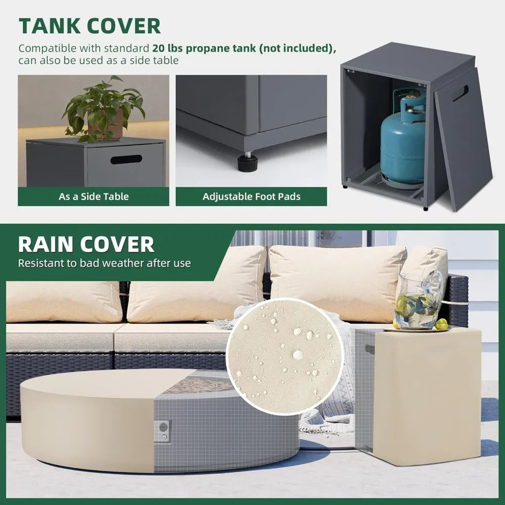 This outdoor fire pit not only serves as a functional heat source but also elevates the aesthetic of your patio, backyard, or deck. Unlike typical fire pits, our innovative design allows for easy access to the propane tank while keeping it concealed, giving your outdoor area a sophisticated look.
