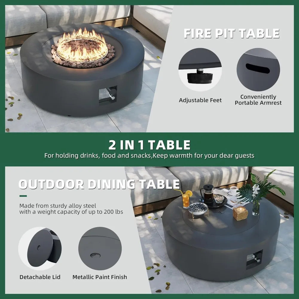 42 Inch Outdoor Propane Gas Fire Pit Table with Hidden Tank for Patio 50000 BTU Iron Round Firepit