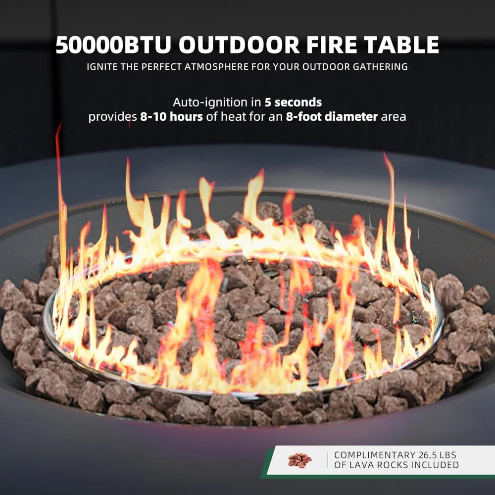 Crafted with quality and style in mind, this modern fire pit table measures 42"D × 42"W × 13"H, providing ample surface area for snacks and drinks while you enjoy the mesmerizing flames. The clean-burning propane fuel ensures a sustainable and eco-friendly option for heat, while the included lava rocks promote even heat distribution, allowing flames to dance beautifully across the pit.