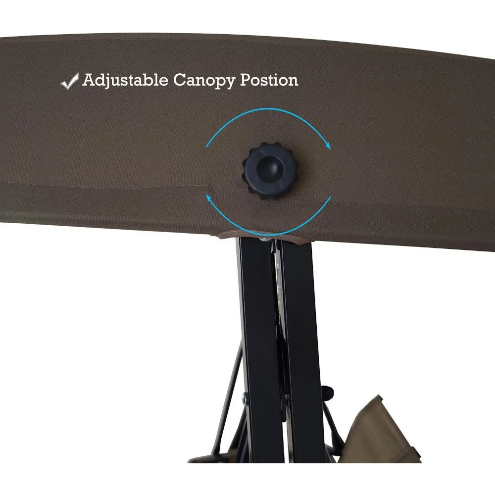 Indulge in outdoor relaxation with the Brenda 3 Seat Patio Swing Chair, a stunning outdoor porch swing glider designed for comfort and style. This luxurious swing combines a breathable seat and back with an adjustable canopy, ensuring you enjoy serene moments in your garden or patio without the harsh sun overpowering you. With a weight capacity of up to 750 pounds, this swing is perfect for three people, allowing friends and family to gather and unwind together.