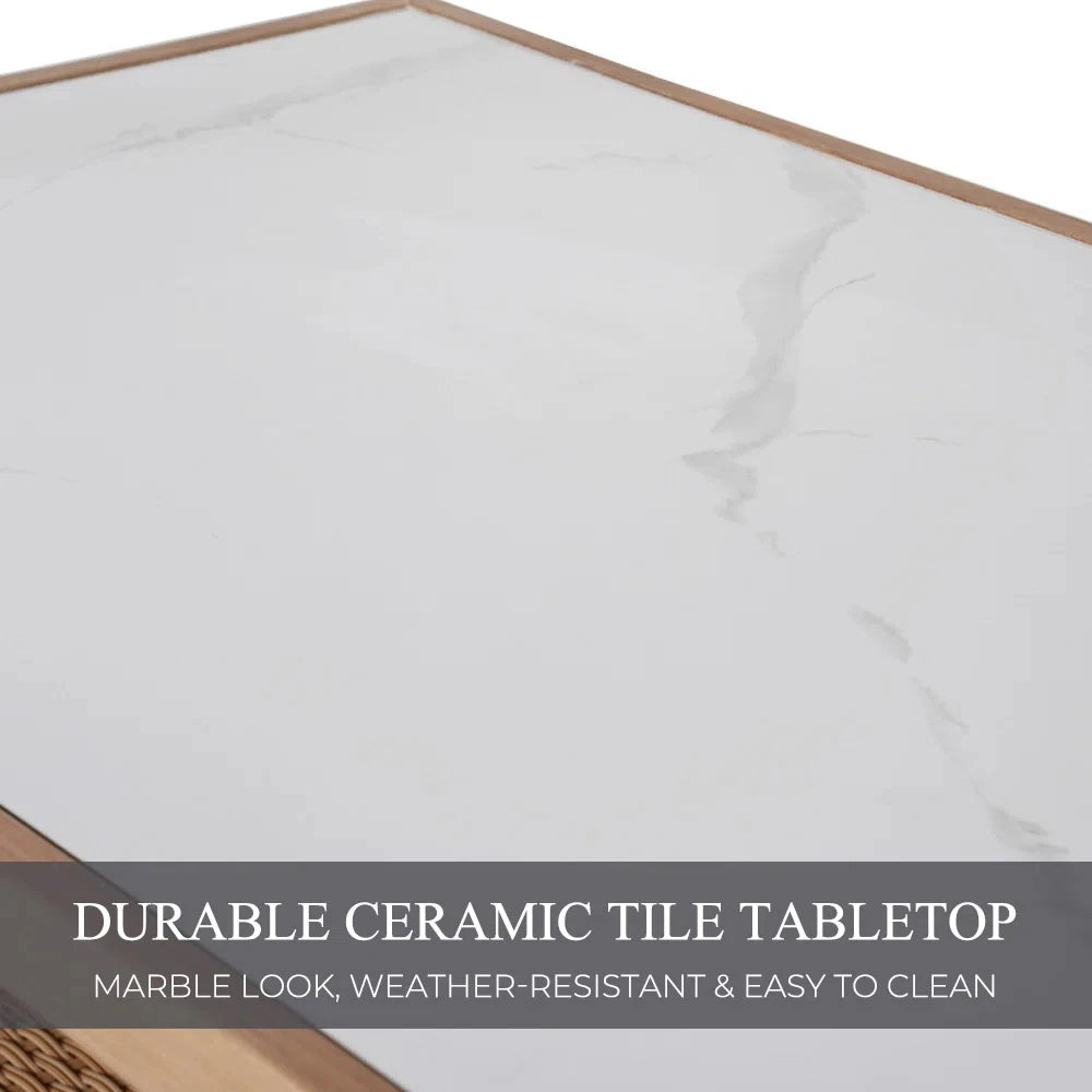 Transform your outdoor space into a tropical paradise with the Outdoor Tiki Bar Set with Widen Ceramic Top. This stunning 3-piece wicker islander tiki bar features a beautifully designed 42-inch wide ceramic top, perfect for entertaining guests or enjoying a quiet evening outdoors. Crafted with high-quality materials, this set is not only stylish but also durable, ensuring that it withstands the elements while maintaining its modern appearance.