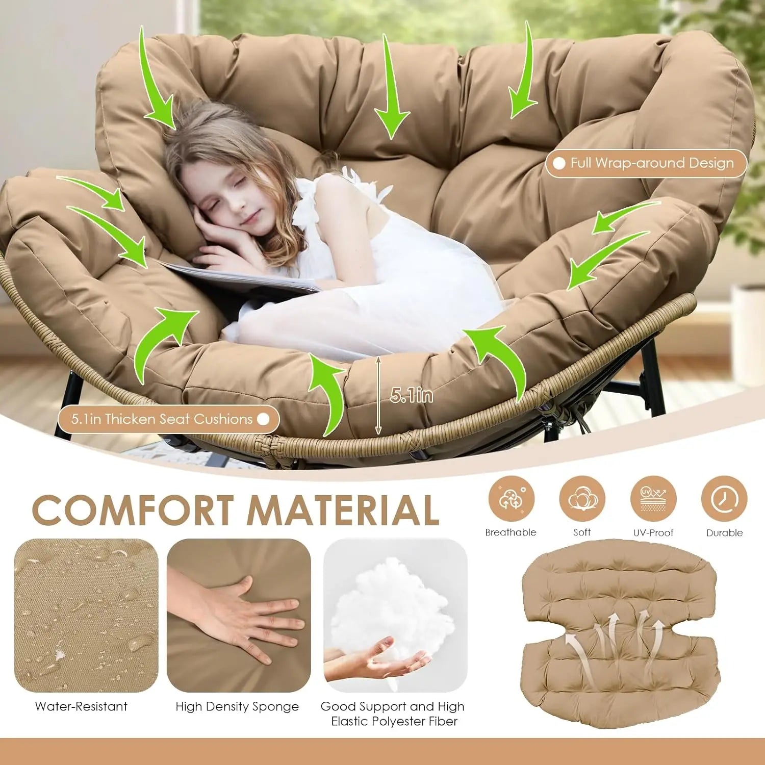 Transform your indoor and outdoor spaces with the Rocking Egg Chair Indoor Outdoor Oversized Lounge Chair. This stunning wicker papasan rocker combines modern design with ultimate comfort, featuring a water-resistant cushion cover in a sleek dark grey color. Perfect for lounging, reading, or simply enjoying a serene moment, this oversized chair is an eye-catching addition to any patio, garden, or cozy nook. With a robust weight capacity of 450 lbs, it caters to users of all sizes, ensuring everyone can enjoy its relaxing embrace.