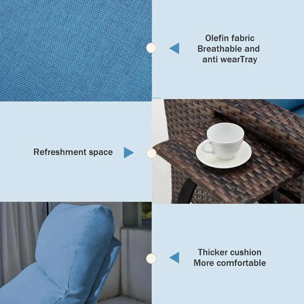 Upgraded Outdoor Recliner Chair Adjustable Back Reclining Patio Chairs Lay Flat Extended Footrest Wicker Rattan Metal